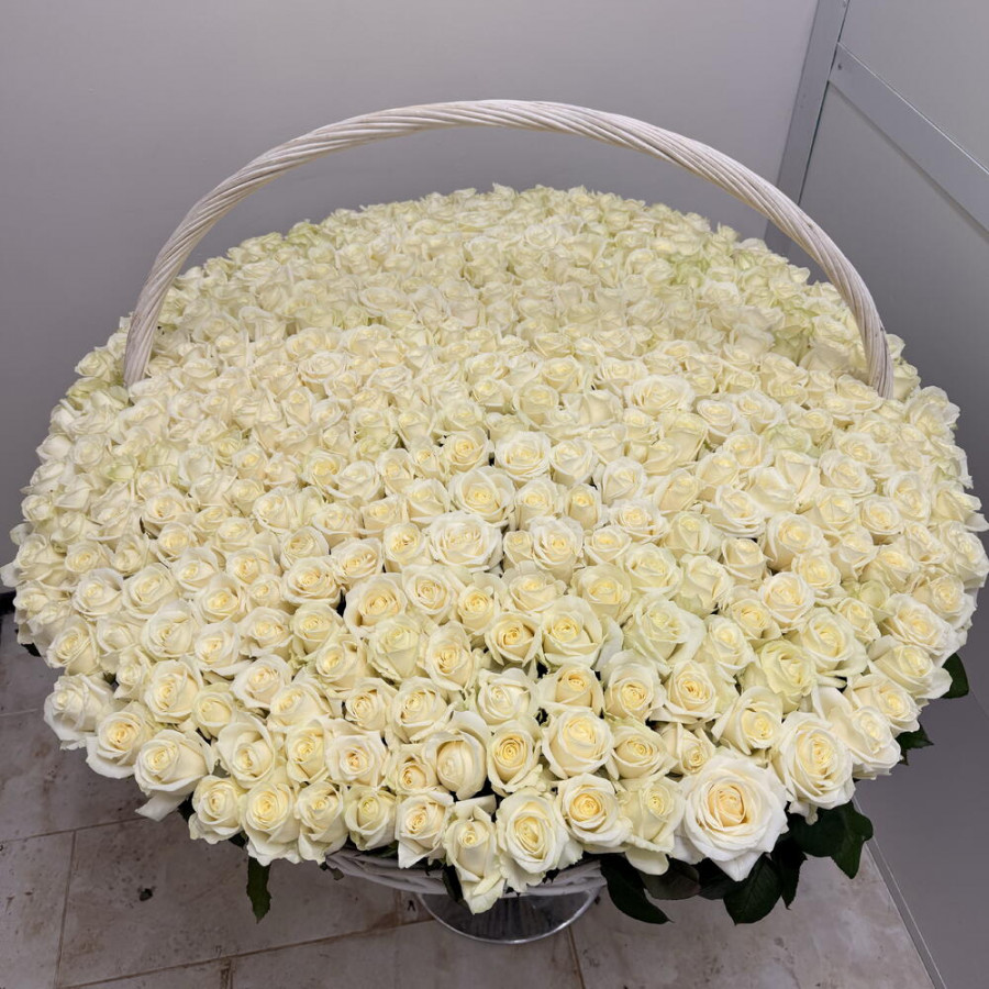 Букет из 501 белой розы в корзине «Нежность» в Тихорецке