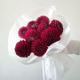 На фото букет из 9 бордовых георгин. В составе: георгина 9 шт, дизайнерская упаковка 2 шт, атласная лента 1 шт, . Все цветы свежие и ароматные, букет красиво оформлен и отлично подходит для подарка. Доступна доставка цветов или самовывоз.