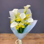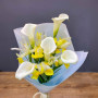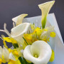 Букет из желтых ирисов и беллых калл в Тихорецке